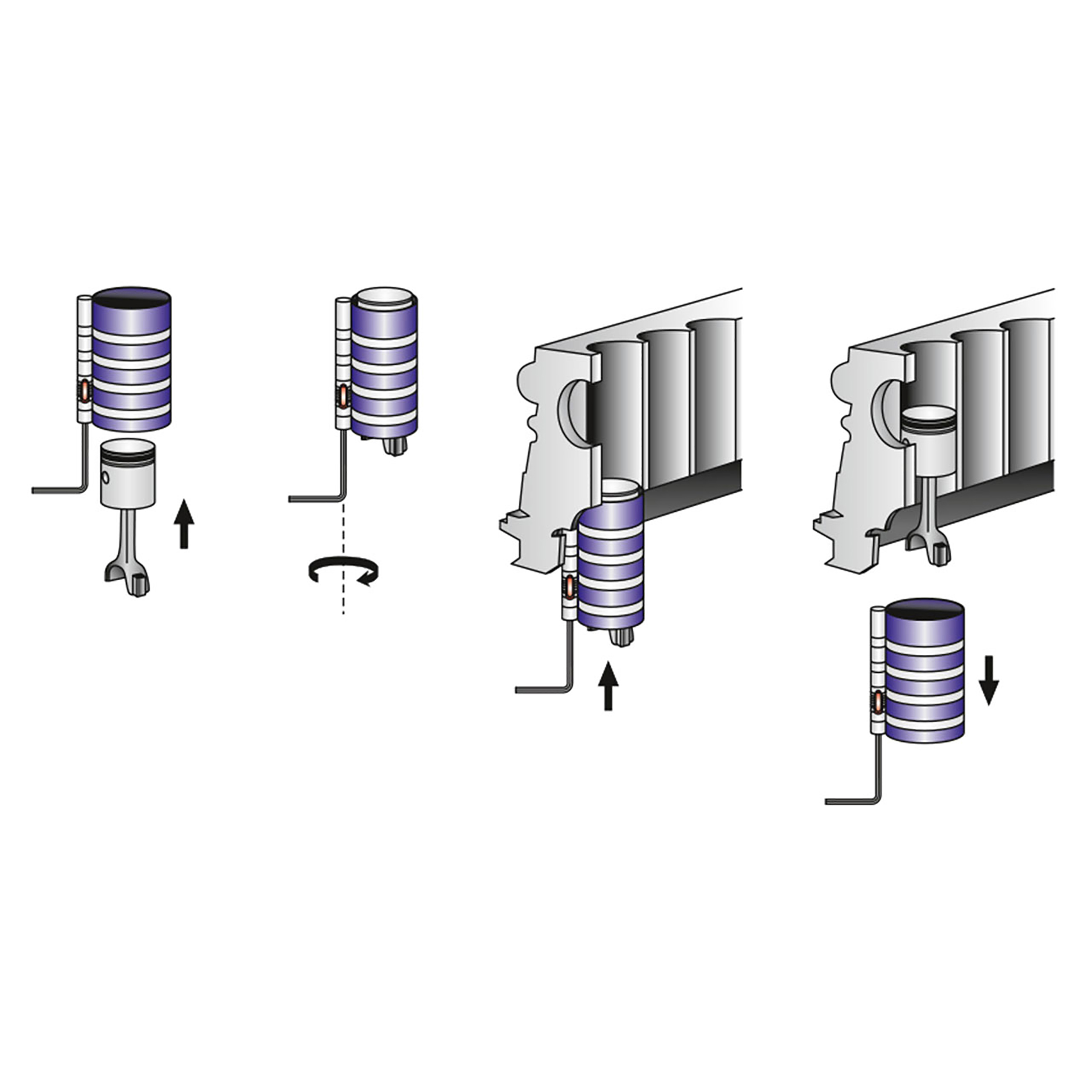 Per l'inserimento di pistoni e anelli nel cilindro. Bloccaggio continuo, con chiave di tensionamento. Acciaio per fasce elastiche ad alta resistenza. Per diametri Ø 60, 125 mm. Lunghezza: 80 mm.